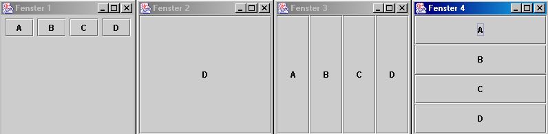 Verwendung von BorderLayout: Normalerweise muß hier mit jedem Aufruf der add-Methode